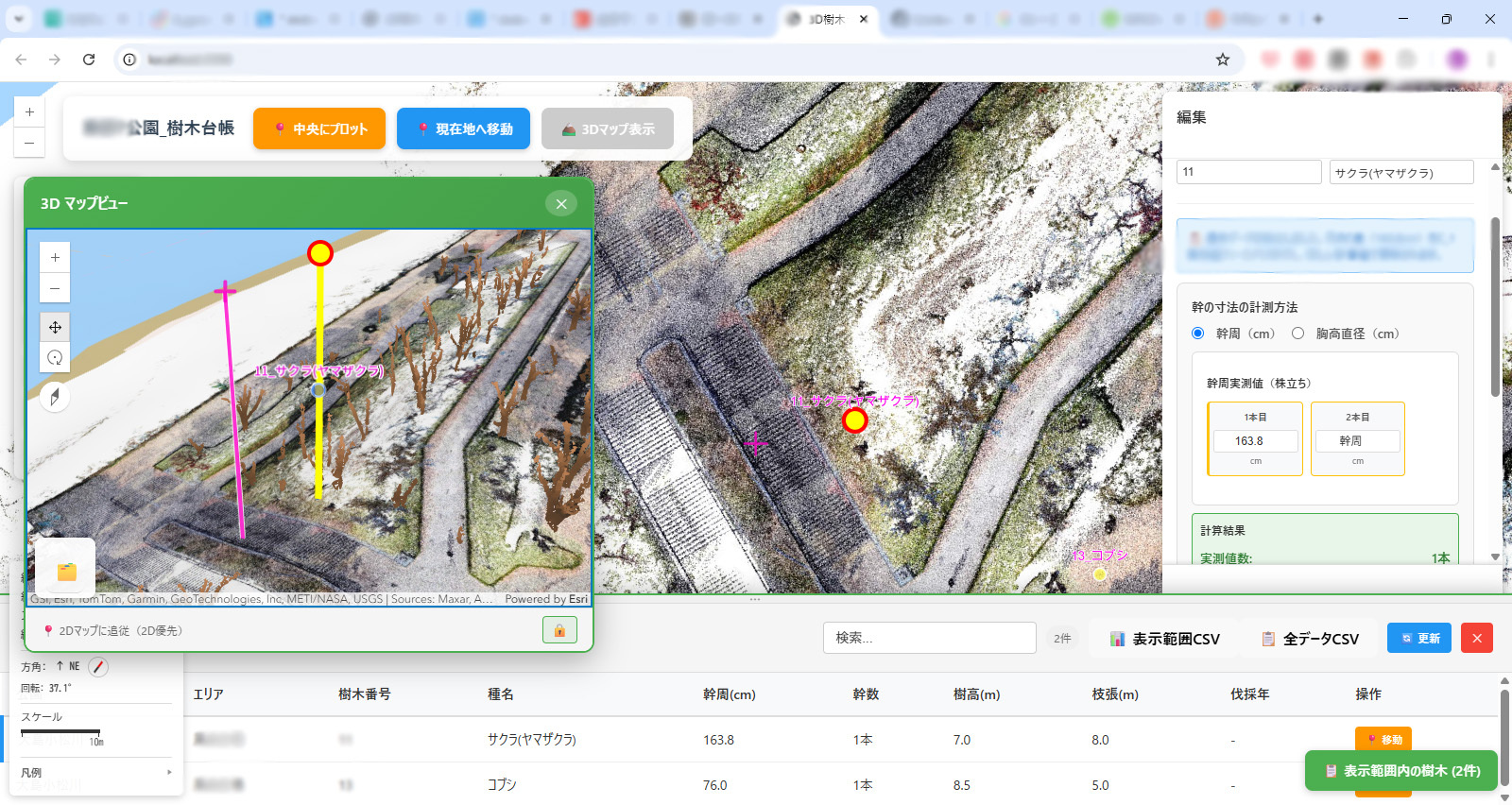- 3Dスキャンから骨格、位置まで面的に解析することで迅速に樹木台帳が揃えられます。